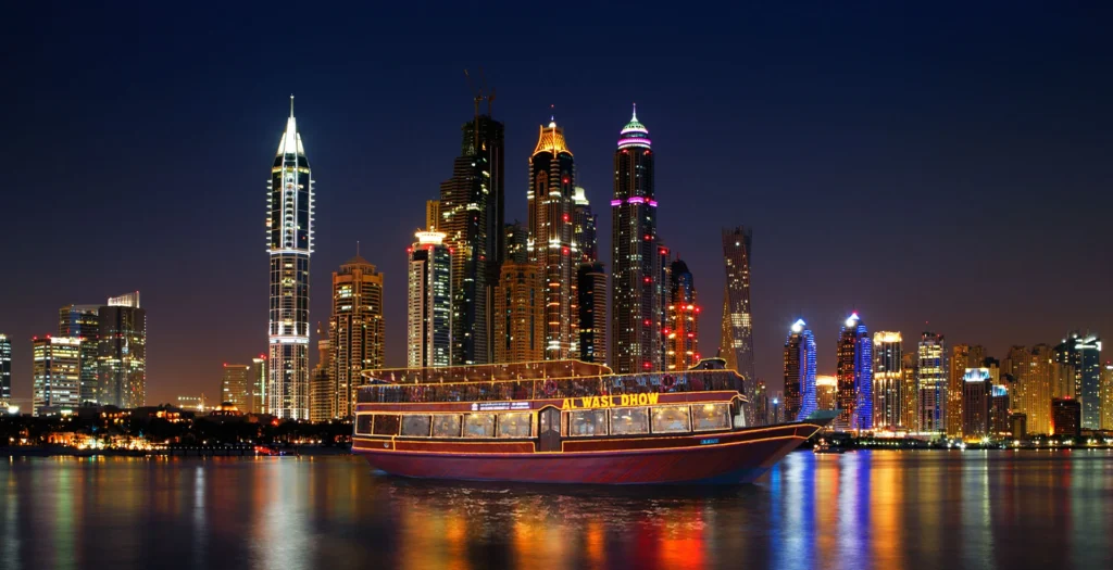 A dhow cruise at Dubai Marina offers a perfect blend of dining, entertainment, and sightseeing, giving you an unforgettable night.