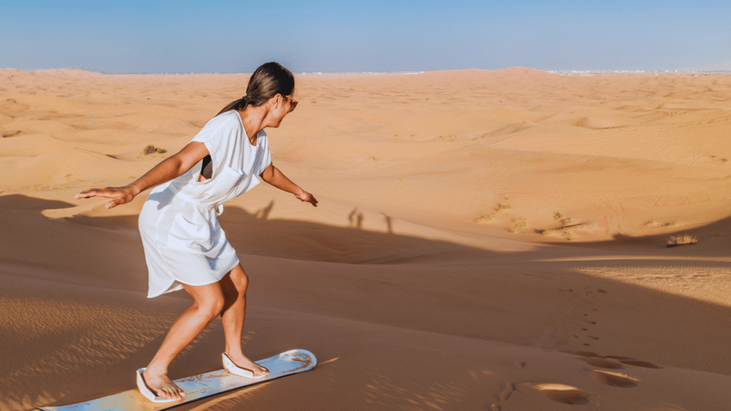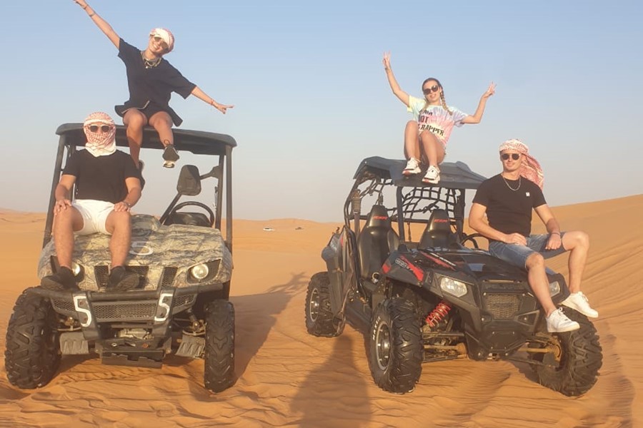 Packages usually include dune bashing, camel rides, sandboarding, live entertainment shows, BBQ dinner, and transfers.